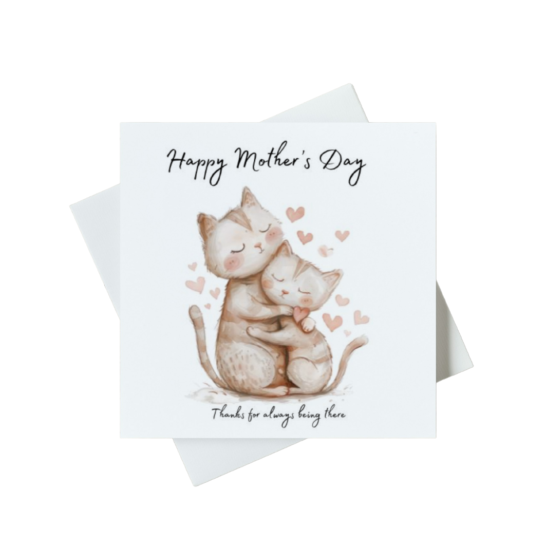'Happy Mother's Day Thank You For Always Being There' Design. This design is printed on high quality 300gsm card and comes with a white envelope.